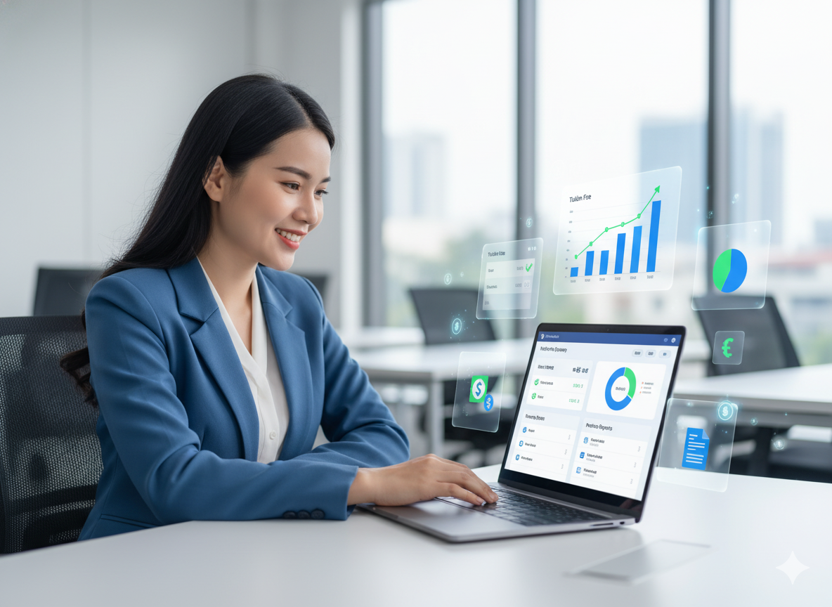 Hệ thống tự động tính toán học phí, theo dõi thanh toán, quản lý ngân sách và tạo báo cáo tài chính chi tiết.