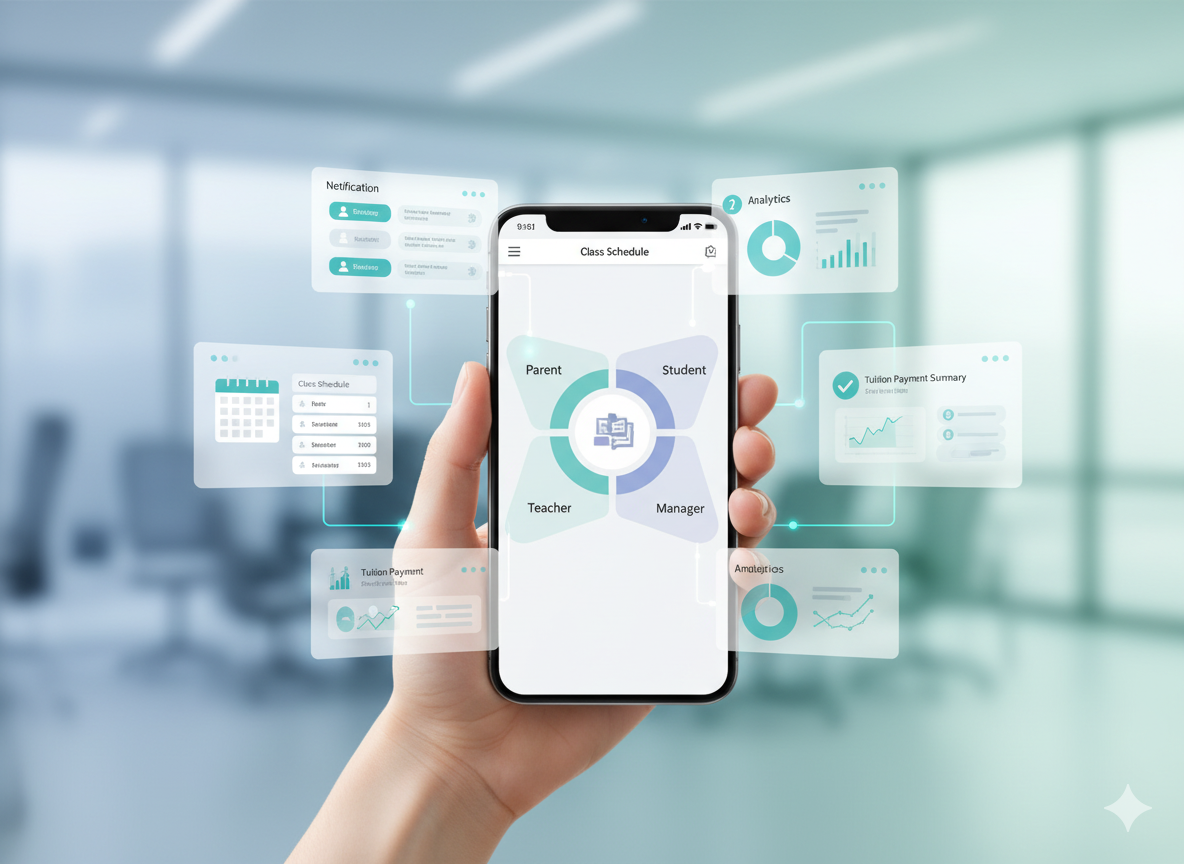 App di động cho Phụ huynh, Học sinh, Giáo viên và Quản lý. Theo dõi điểm danh, học phí, lịch học mọi lúc mọi nơi.